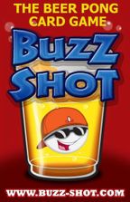 If you like playing Beer Pong you're going to love BUZZ-SHOT! We've taken the greatest beer drinking game ever and raised it to the next level. We've developed a card game with simple instructions on how each player's "Shot" will be performed. In addition to the host's "House Rules", a player will simply need to flip over a card before they shoot and perform the shot instructions on the card. We know you will enjoy BUZZ-SHOT as much as we do. Have fun and drink responsibly!